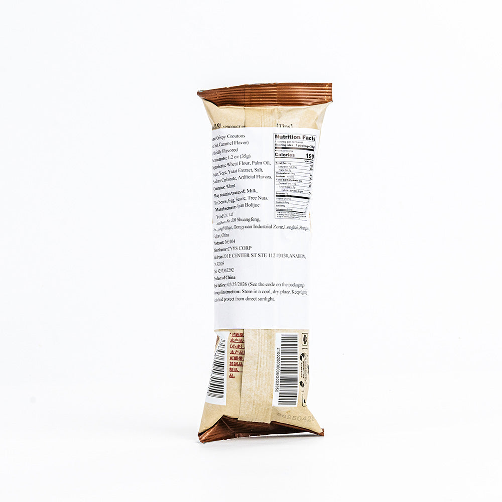 Classic caramel sea salt croutons. The perfect sweet and salty combo—crunchy and rich taste. A must-try for salty snack lovers!